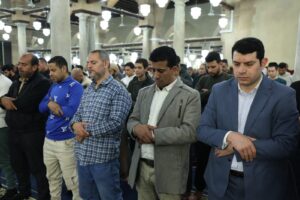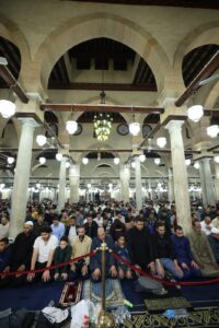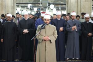 وتقدَّم صفوف المصلين فضيلة أ.د/ محمد الضويني، وكيل الأزهر، وأ.د عباس شومان، أمين عام هيئة كبار العلماء، وأ.د/ محمد الجندي، الأمين العام لمجمع البحوث الإسلامية، والدكتور هاني عودة، مدير الجامع الأزهر، والشيخ حسن عبدالنبي، وكيل لجنة مراجعة المصحف، إلى جانب لفيف من علماء الأزهر الشريف وقياداته، حيث شاركوا جموع المصلين الدعاء والتضرع إلى الله تعالى أن يتقبل صالح الأعمال، وأن يعمَّ الخير والبركة على مصر والأمة الإسلامية.